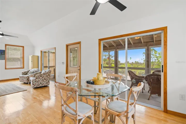 Welcome to your laid-back coastal retreat in the desirable Indian Bay neighborhood of Hernando County. This elevated two-bedroom, one-and-a-half-bath home captures the essence of Gulf-side living with inviting spaces and breezy waterfront charm. Step inside to a light-filled family room that flows effortlessly into a spacious kitchen designed for both function and style. Featuring abundant cabinetry, granite countertops, and a cozy eat-in area, the kitchen overlooks the Gulf—creating the perfect backdrop for morning coffee or evening meals. Both the kitchen and family room offer sliding glass doors that open to a covered, screened front deck where you can unwind and take in stunning sunset views over the water. The home offers two generously sized bedrooms, each with pocket sliding doors, ample closet space, and private sliding glass doors leading to an expansive 31-foot covered back patio overlooking a peaceful, wooded backyard—ideal for relaxing or entertaining in a more secluded setting. Need extra space? A charming spiral staircase in the family room leads to a 31’ x 12’ loft, currently utilized as a third bedroom, offering flexibility for guests, a home office, or creative space. Underneath the home, you’ll find an impressive 60’ x 31’ area with 11-foot ceiling height and a convenient half bath—perfect for storing boats, RVs, or all your coastal lifestyle toys. Ideally located just minutes from Hernando Beach shopping, dining, and local marinas, this home offers the perfect blend of comfort, functionality, and relaxed coastal living. Whether you’re looking for a full-time residence or a weekend getaway, this Gulf-view gem is ready to welcome you home.
