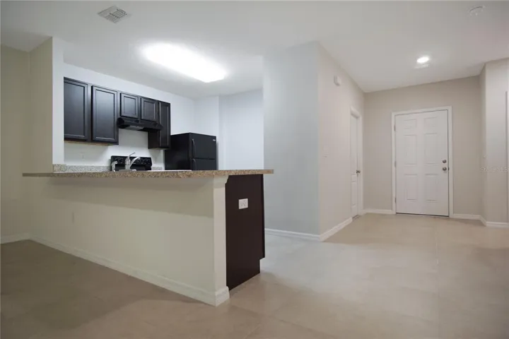 As you step through the entrance, you’ll be greeted by an inviting open floor plan that seamlessly connects the various living spaces. To the right, the well-appointed kitchen awaits, featuring modern appliances including a refrigerator, range, and dishwasher.