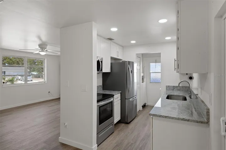 Welcome to this beautifully maintained 2-bedroom, 2-bath home situated on a generous .29-acre lot. Inside, you’ll find an updated kitchen featuring soft-close cabinetry, granite countertops, and stainless steel appliances—perfectly designed for both everyday living and entertaining. Updated flooring flows throughout the home, creating a cohesive and modern feel. The striking brick front exterior adds timeless curb appeal. Enjoy year-round relaxation in the enclosed porch, complete with outdoor carpet and a convenient pass-through window—ideal for serving guests with ease. Step outside to a private sitting area with patio pavers, offering the perfect space for grilling and gathering.