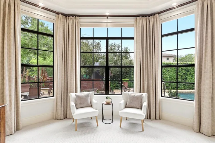 Situated on a privately fenced .50-acre corner homesite within Sandy Lane Reserve, an enclave of 24 custom-built homes, this one-owner, METICULOUSLY DETAILED estate offers just under 6,000 sf of highly refined LUXURY LIVING, distinguished by its level of finishes, scale & completeness. VOLUME CEILINGS are enhanced by miles of LAYERED ARCHITECTURAL DETAILS including COFFERED & tray designs, while rich, warm cabinetry, WOOD FLOORING & select STONE FLOORING carried throughout the main living areas establish a cohesive & elevated interior. Multiple RETRACTABLE SLIDERS & French doors extend the primary living spaces to a lanai spanning the entire rear elevation, creating a SEAMLESS INDOOR/OUTDOOR experience. DESIGNER LIGHTING from Buster & Punch of England & Hubbardton Forge introduces a refined presence. Upon entry through ARCHITECTURALLY CRAFTED WOOD DOORS, a masterpiece unfolds, beginning w/ the formal living room, anchored by a gas fireplace w/ custom tile surround & built-in cabinetry, while adjoining gathering spaces transition effortlessly into the stately dining room & grand kitchen. A dual-sided butler’s pantry welcomes you w/ glass-accented cabinetry & built-in Sub-Zero wine refrigeration. A well-appointed kitchen is centered around an expansive island, supported by a hidden walk-in pantry & extensively refined cabinetry. High-end appliance package including WOLF convection & steam ovens w/ built-in steamer, THERMADOR refrigerator, DACOR 6-burner gas cooktop, pot filler, BOSCH dishwasher, warming drawer, dual sinks & eat-in bar, complimented w/ striking stone countertops. The primary wing, outfitted w/ a generous sitting area overlooks the meticulously landscaped grounds & stunning pool. A spa bath features statement chandelier, travertine flooring, custom cabinetry, dual vanities, jetted tub & expansive walk-in travertine shower. His/hers CALIFORNIA CLOSET systems are of the highest standards. A secondary MAIN-LEVEL GUEST SUITE offers comparable scale, including walk-in travertine shower, oversized closet w/ sauna, gun safe & direct access to the limitless lanai. Beyond a wood & wrought iron staircase, upstairs are 2 generously sized bedrooms featuring full baths & walk-in California closets, a SPACIOUS LOFT & 2 ample storage/tech custom closets. The main-level THEATRE ROOM experience is unmatched, offering automated seating & movie-quality surround sound. CRESTRON AUTOMATION provides ONE-TOUCH lighting, audio, alarm & security control while pool & MOTORIZED window treatments are also smart-controlled. The outdoor living component is showstopping w/ a FULL-WIDTH LANAI featuring TRAVERTINE flooring, double-sided GAS FIREPLACE, 6 RETRACTABLE SCREENS, hand-painted mural & multiple seating areas. The SUMMER KITCHEN includes commercial-grade grill, sink, beverage refrigeration, custom cabinetry & media. A travertine pool deck surrounds a resort-style pool w/ sun shelf, spillover fountains, fire bowls, spa & fire pit all set within newly landscaped grounds. Addt’l features include WHOLE-HOUSE GENERATOR, SALTLESS WATER FILTRATION, 2 tankless water heaters, 4 HVAC systems, oversized 3-car garage w/ epoxy flooring, extensive cabinetry & attic storage. Ideally located w/ convenient access to top-rated Seminole County schools, dining, shopping & major thoroughfares—offering a well-connected and effortless lifestyle. With the level of finishes and IMPECCABLE execution, this MASTERPIECE reflects a standard of living rarely found!