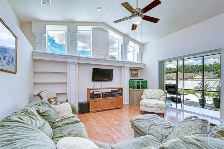 Opportunities like this simply do not come along often. Nestled on a breathtaking .45-acre peninsula-style lot in one of Valrico’s most sought-after communities, this Twin Lakes treasure offers an extraordinary combination of rare land, resort-style outdoor living, and a warm, gracious floor plan that has stood the test of time. The way the home rests at the curve of the road creates effortless curb appeal, complete with a charming circular driveway and lush tropical landscaping that sets the tone the moment you arrive. Added peace of mind comes with a roof replaced just five years ago, a pool resurfaced five years ago, and freshly painted kitchen cabinets — so the big-ticket items are already handled and you can simply move in and make it your own. Inside, hardwood floors, neutral tones, and an abundance of natural light pour through the home, giving it a timeless warmth and an easy, flowing layout that works beautifully for both everyday living and entertaining. The home is also wired for surround sound throughout. A private office with plantation shutters sits quietly at the front of the home near the primary suite — ideal for working from home or a reading retreat. The primary suite is a true sanctuary, featuring sliding glass doors to the lanai, dual walk-in closets, and a spa-inspired en suite bath complete with dual vanities, a soaking tub, and a walk-in shower. The kitchen truly feels like the heart of the home, outfitted with freshly painted white cabinetry, stone countertops, stainless steel appliances, a breakfast bar, and a pantry. A sunny breakfast nook with an oversized window frames beautiful pool views and fills the space with light. The family room impresses with soaring vaulted ceilings and built-in shelving, while sliding doors open to the screened lanai and beyond. The living and dining rooms flow naturally together, each with sliders connecting to the outdoors. All bedrooms are generously sized — two share a Jack-and-Jill bath, and a fourth enjoys easy access to a nearby bath that doubles perfectly as a pool bath. At the rear of the home, a spacious bonus room with a tray ceiling and direct pool access is ready to become whatever you need it to be. Step outside and the yard truly takes your breath away. The sparkling pool features a sun-shelf entry and is framed by lush tropical landscaping and a beautiful rock feature — all set within a fully fenced yard of remarkable scale that is almost unheard of in today’s market. Whether you’re entertaining a crowd or simply unwinding in your own private oasis, this outdoor space delivers a resort lifestyle every single day. And the lifestyle extends beyond your own backyard — Twin Lakes residents enjoy a community pool and an 11-acre park, all just minutes from major shopping, top-rated schools, and convenient commuter routes. This is a rare chance to plant roots in one of Valrico’s most desirable neighborhoods on a lot that simply cannot be replicated.