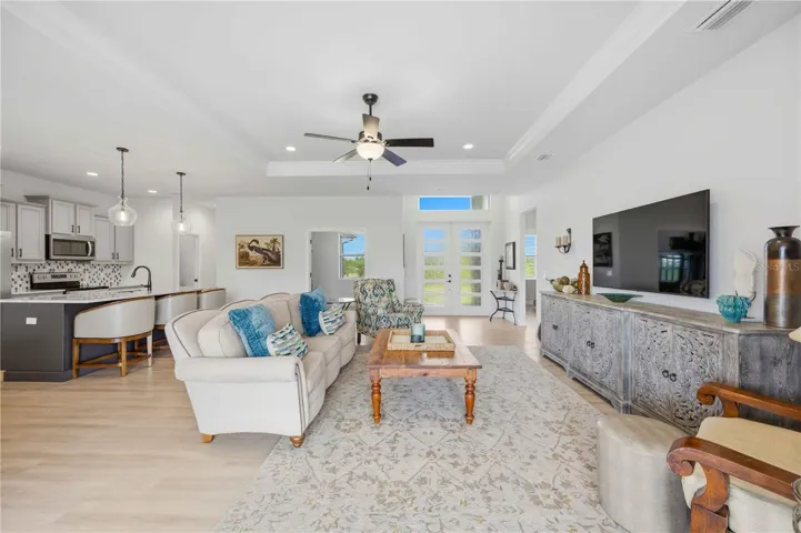 3 BED + DEN | 2 BATH | 80 FT CONCRETE SEAWALL | NO BRIDGES | JUST BUILT IN 2023 | TURN KEY FURNISHED | LUXURY INTERIOR FINISHES | OVERSIZED HEATED 30 FOOT POOL AND SPA | OUTDOOR KITCHEN | LARGE PAVER LANAI | HIGH CEILINGS | NO HOA | PUBLIC WATER AND SEWER are just a few of the amazing features this property offers — Experience true SAILBOAT WATER living with direct access and no bridges, perfect for boating enthusiasts. This like-new home offers a bright, open floor plan with luxury granite countertops, and a large island with seating ideal for entertaining. The cabinetry throughout is all solid wood with soft-close features and designer finishes, adding both quality and style. Expansive 8 foot pocket sliders create a seamless indoor-outdoor flow leading to your private backyard oasis. Enjoy a fully equipped OUTDOOR KITCHEN featuring an infrared grill, sink, and drink fridge, all overlooking the heated pool and spa with LED lighting. Conveniently located near shopping, dining, and everyday amenities while still tucked away for peace, quiet, and tranquility. Plus, you’re just approximately 30 minutes from Englewood Beach, making it easy to enjoy some of Southwest Florida’s most beautiful Gulf Coast shores.