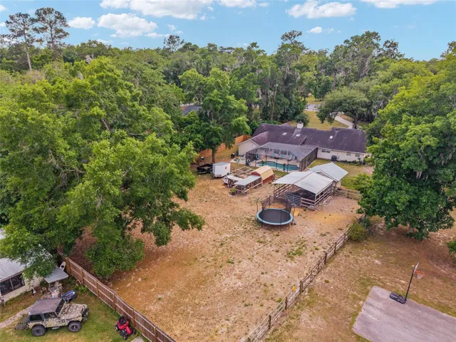 Welcome to your own slice of country paradise in Ocala! This charming 1-acre mini farm offers the perfect blend of peaceful rural living with convenient access to town. Fully fenced and ready for animals, the property is ideal for horses, goats, chickens, or anyone dreaming of a small homestead lifestyle. The land is high and dry with plenty of open space for grazing, gardening, or expanding your vision. Mature trees provide shade and privacy, while the layout offers room for barns, coops, or additional structures. Whether you’re an equestrian enthusiast or simply looking for room to roam, this property delivers flexibility and freedom. The home features a warm and inviting layout with abundant natural light and comfortable living spaces. New features as of 2025 include AC, electrical, fencing, interior doors, and primary shower. Pool pump and pool screen replaced is 2024, new garage door and opener in 2023. Enjoy quiet mornings on the pool deck with coffee and evenings watching the sunset over your land. With agricultural-friendly zoning, you have the freedom to truly make this property your own. Located in desirable SE Ocala, you’re just a short drive to shopping, dining, medical facilities, and the renowned horse farms that make this area famous. This is a rare opportunity to own a manageable mini farm in one of Florida’s most sought-after equestrian communities. There is also a back entrance to the property off a paved road for easy access. Bring your animals, your toys, and your dreams—this property is ready to welcome you home.