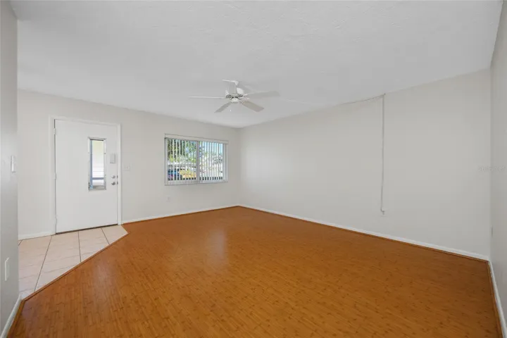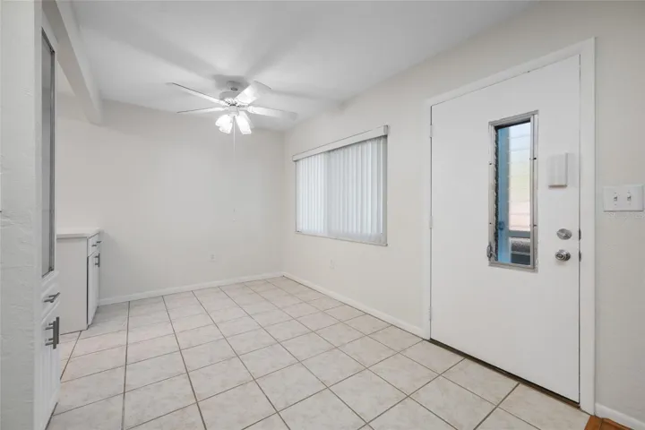 This light and bright two-bedroom, one-bath round-floor unit at Seminole Gardens sits in a vibrant 55+ community and includes covered parking for convenience. The living space flows smoothly from a spacious living/dining area into a well-appointed kitchen with ample cabinet and counter space, all accented by large windows that flood the home with natural light. Both bedrooms offer good-sized closets and flexible furniture arrangement, while the bathroom remains well-maintained with easy-access fixtures. Residents enjoy active social clubs, and activities, community amenities, making this a low-maintenance, move-in-ready option. Low HOA fees cover common areas, exterior, landscaping, pool maintenance etc contributing to a quiet, friendly atmosphere. This home is ideal for downsizers, seasonal residents, or anyone seeking a bright, easy-to-care-for living space in a welcoming 55+ enclave, with close proximity to shopping, dining, and recreational options. Move-in ready with the potential for personalized updates, and easy access to main roads and transit.