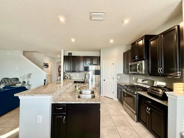 Welcome to this beautiful two-story home in the highly sought-after Lucaya Lake Club community! Offering four bedrooms, two and a half bathrooms, and a versatile bonus room, this home features a spacious and functional layout designed for both everyday living and entertaining. The open-concept kitchen and living area creates a seamless flow, highlighted by granite countertops, rich dark wood cabinetry, a large center island, gas range, and stainless-steel appliances. Upstairs, you’ll find a generous loft area that provides flexible space for a second living room, office, or play area. The oversized primary suite features an elegant tray ceiling and a private en-suite bath complete with double vanity, walk-in shower, and a relaxing garden tub. Step outside to enjoy your wraparound screened porch with plenty of space for lounging and outdoor cooking and take in the view of the fully fenced backyard, perfect for outdoor gatherings, pets, or simply unwinding in your own private space. Located in Lucaya Lake Club, residents enjoy resort-style amenities including a sparkling community pool, fitness center, clubhouse, playground, and access to the scenic lake with a dock for kayaking and paddleboarding. With its ideal layout, upgraded kitchen features, and vibrant community lifestyle, this home offers the perfect blend of comfort and convenience.