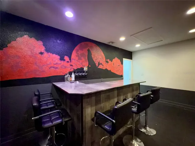 Fully insulated garage with A/C, vinyl flooring & bar setup — easily transform into a gym, game room, theater, or entertainment space