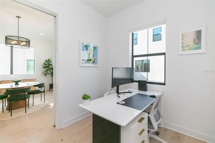 Contemporary living at its finest with over $100K in upgrades meticulously maintained 4 bedroom plus office, 3.5 bath townhome with an oversized 2-car garage and huge open air rooftop terrace just steps from Bayshore Boulevard. Modern elegance plus functional design with all the bells and whistles top to bottom, including beautiful Sawgrass Hills European White Oak engineered hardwoods throughout. This open-concept layout enjoys loads of natural light as an end unit as well. Gourmet kitchen featuring Bosch appliances, quartz countertops, custom cabinetry and a large central island. Office is located off the dining room with neighboring powder bath. The owners suite has both dual closets and vanities. Saving the best for last, this turfed rooftop terrace is perfect from sunrise to sunset even offering glimpses of Tampa Bay. Front yard is also turfed and fully fenced for any furry friends to frolic. Custom woodwork, designer lighting, personalized closet organizers, Big Ass Fans, you name it – no expense has been spared…A-rated schools and 100% high and dry for both Helene / Milton – worth every penny to call home!