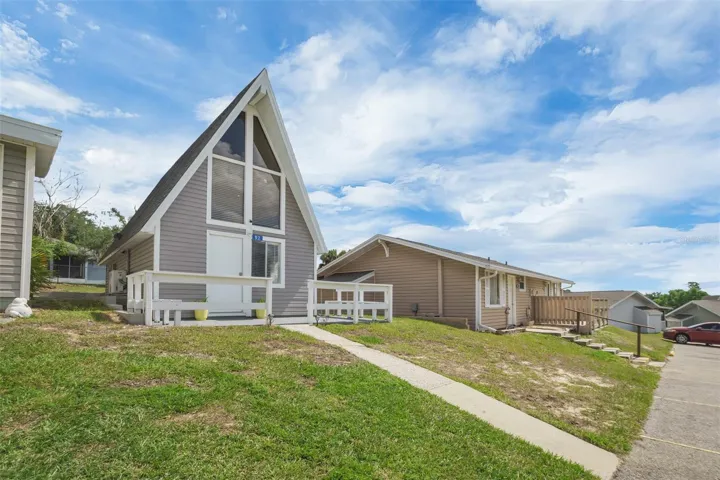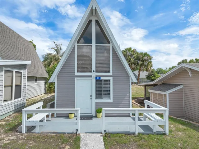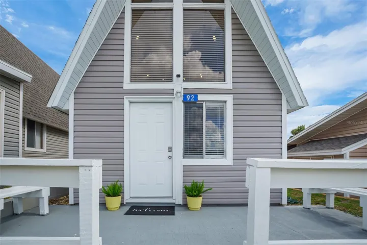 Completely remodeled and turnkey, this 2-bedroom, 1-bath A-frame condo in gated Vacation Village offers standout appeal as a personal getaway, seasonal retreat, or Airbnb-style investment opportunity, subject to HOA and local regulations. Being sold fully furnished, all furniture is included, making this an easy plug-and-play option for immediate personal use or short-term rental setup. The interior has been thoughtfully updated with new appliances, an on-demand water heater, new roof, renovated kitchen and bath, upgraded finishes, and a bright open living space with soaring ceilings, dramatic windows, and a spiral staircase leading to the loft-style second bedroom. The main-level bedroom adds flexibility for guests, while the private patio and charming front porch create inviting outdoor spaces to relax after a day of exploring Central Florida. Be sure to CLICK THE VIRTUAL TOUR FOR 24/7 SHOWINGS experience right from your phone, tablet, or computer.??