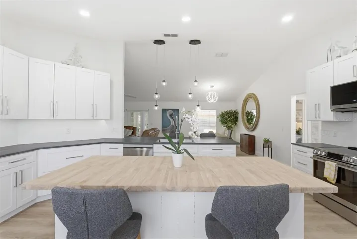 The fully renovated kitchen is a standout, featuring a butcher block island countertop, new appliances, and modern lighting, creating the perfect space for cooking and entertaining. A new HVAC system adds comfort and efficiency, while thoughtful upgrades throughout provide a fresh, move-in ready feel.