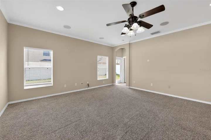 Step inside and you’ll immediately notice the open, functional layout built for real life with a built in fireplace to give that cozy feeling. The kitchen is a standout — 42″ cabinets, stainless steel appliances, a custom island with Corian countertops, and enough space to actually cook. The triple-split floor plan gives everyone their own space, with the primary suite featuring his-and-hers walk-in closets and a private bath with soaking tub and walk-in shower. The fourth bedroom is tucked in the back with its own bathroom access — perfect for guests, in-laws, or a home office. Oh, and there’s a 3-car garage. Yes, really.